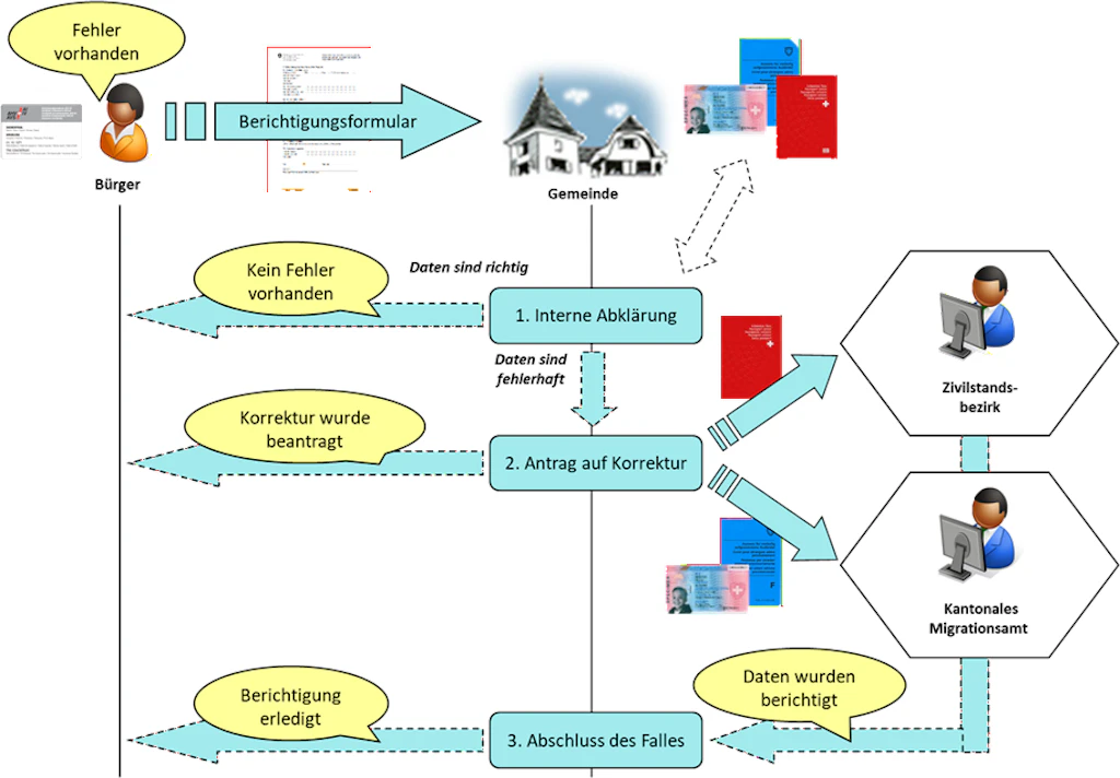 Die ZAS stellt ein Formular zur Verfügung, mit dem allfällige Fehler in den Identifikationsdaten im UPI gemeldet werden können. Dieses Formular muss dem Quellregister zugestellt werden. Bitte beachten Sie die Vorgehensweise sowie die Bedingungen auf der ersten Seite des Dokuments. Die ZAS führt keine Nachverfolgung des Verfahrens durch und übernimmt auch keine Verantwortung für dessen Ausgang.