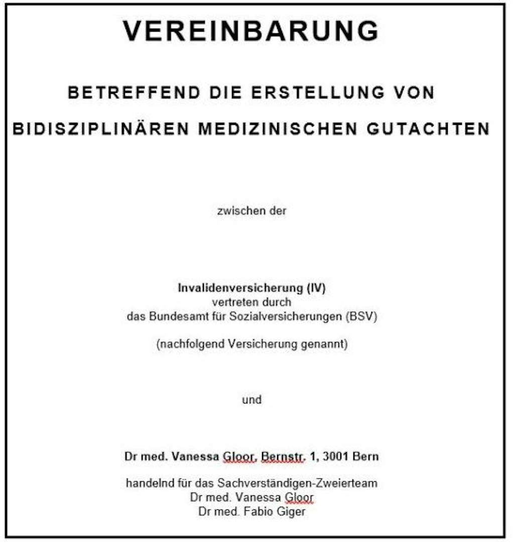 - Die Leistungen der beiden Ärztinnen / Ärzte, die den Auftrag ausgeführt haben, das bidisziplinäres Gutachten zu erstellen, müssen in einer Rechnung aufgeführt sein. Es ist nicht erlaubt, jedes Teilgutachten separat in Rechnung zu stellen.