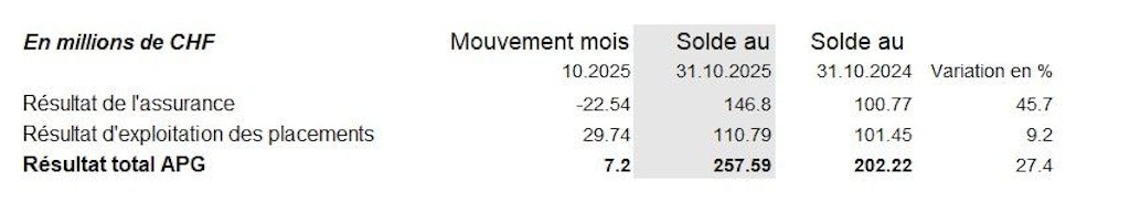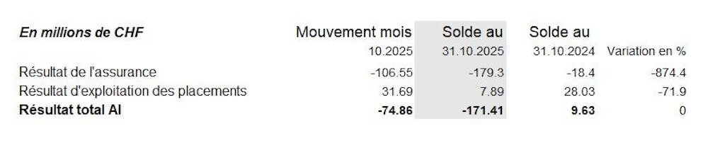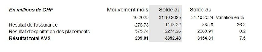 Présentation synthétique de l'évolution mensuelle des résultats des assurances sociales AVS / AI / APG