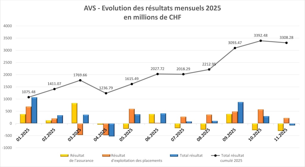 Evolution des résultats mensuels AVS / AI / APG