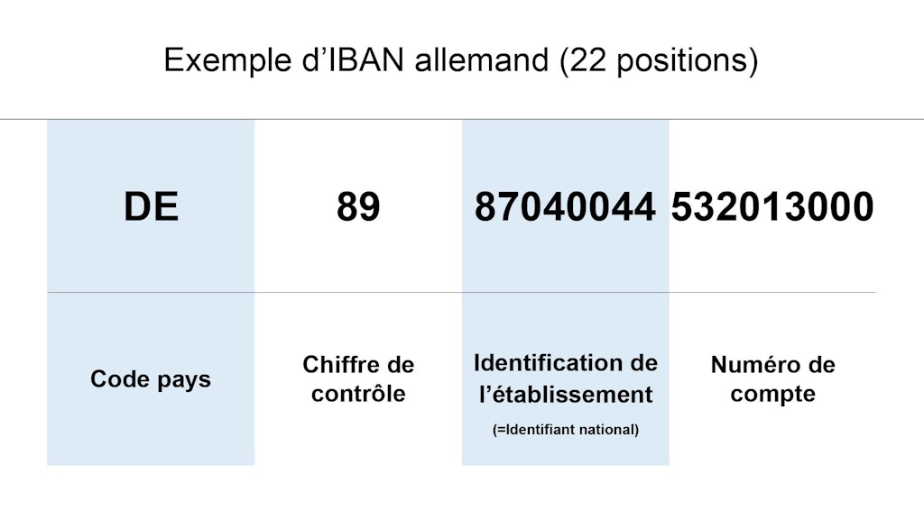 Chaque pays attribue à l’IBAN une forme et une longueur spécifiques.