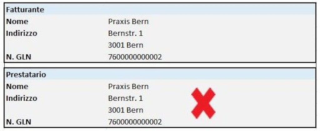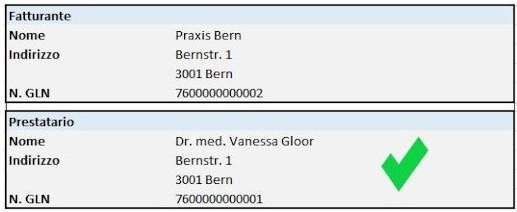 - Nella rubrica «Prestatario» bisogna indicare nome, cognome, indirizzo e Global Location Number (GLN) del medico che rappresenta la coppia di medici periti secondo la convenzione conclusa con l'UFAS.