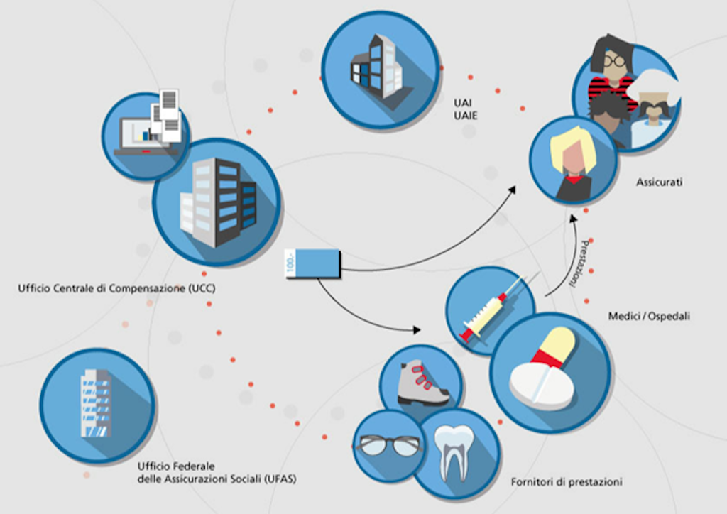Le prestazioni versate possono essere di diversi tipi, ad esempio le prestazioni mediche fornite da medici, terapisti e ospedali, i provvedimenti d’integrazione professionale e d’accertamento, le spese di viaggio legate alle misure d’integrazione, i mezzi ausiliari dell’AVS e dell’AI.