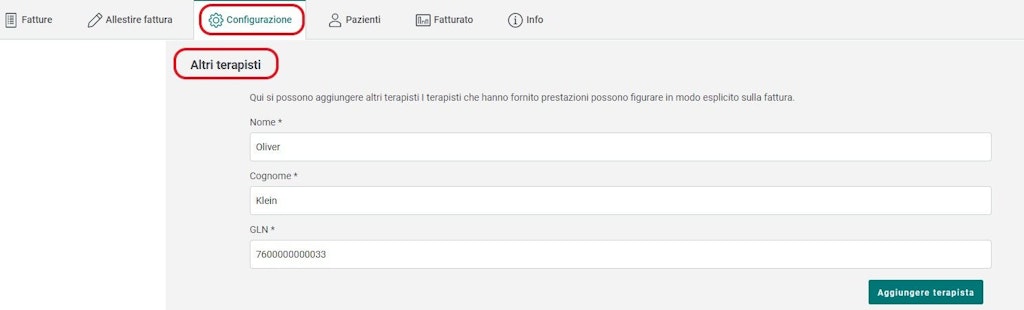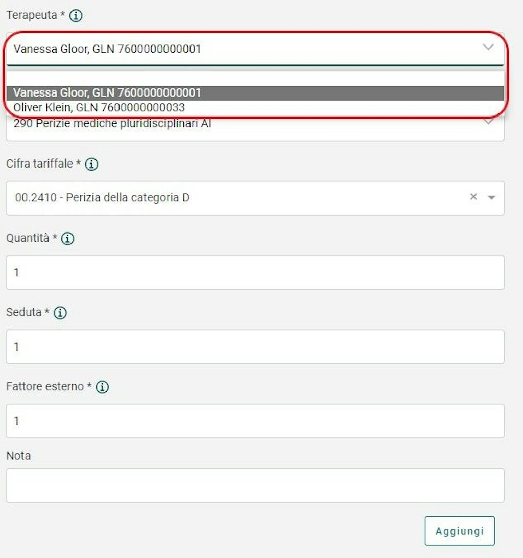 - Le persone in formazione postgraduale sono impiegate presso uno psicoterapeuta supervisore riconosciuto dall'AI, ovvero che ha sottoscritto la convenzione tariffaria e dirige il lavoro dei propri dipendenti supervisionandoli e fatturando le loro prestazioni all'AI. Queste persone in formazione postgraduale non fatturano autonomamente le proprie prestazioni. Nella rubrica «Prestatario» figura quindi sempre il supervisore, mentre nella rubrica «GLN Med» figura il GLN della persona in formazione.