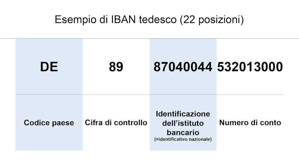 Ogni Paese attribuisce all’IBAN una composizione ed una lunghezza specifiche :